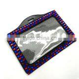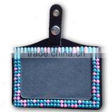 Pink/Blue Pearl Style ID Holder, High Quality Promotion Gift PU Leather Badge Holder With Crystal Gem Decoration