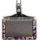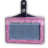Popular ID Holder, High Quality Promotion Gift PU Leather Badge Holder With Crystal Gem Decoration