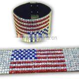 Rhinestone Attached on PU Leather Bracelet, Hot Sale Gift Leather With Crystal Gem Decoration