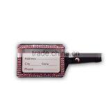 ID Holder With Pink Gem, High Quality Promotion Gift PU Leather Badge Holder With Crystal Gem Decoration