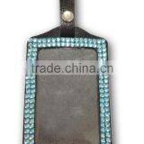 ID Holder With Light Blue Gem, High Quality Promotion Gift PU Leather Badge Holder With Crystal Gem Decoration