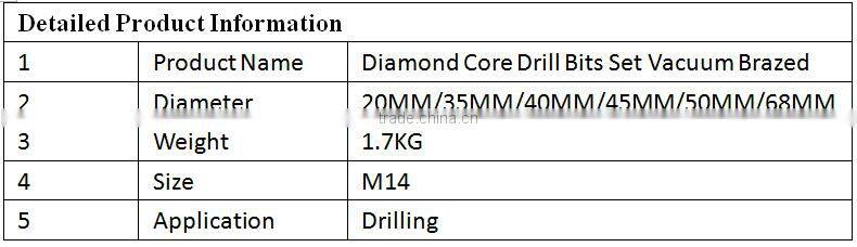 M14 Vacuum Brazed Diamond Core Drill Bits Set Kit Dry Wet Grinder Hole Saw Boring Granite Marble Ceramic Tile Porcelain Stone