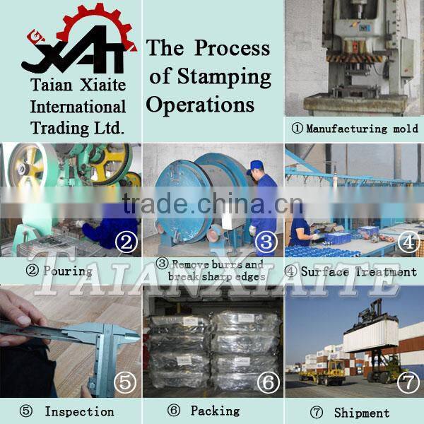 Taian Xiaite International Trading Ltd. is a professional company which produces and manages castings, forgings and machinery fittings. It includes Sheng Cheng Machine Manufacture Ltd and has the production capacity of producing iron castings, steel castings, precision castings, forgings and machining etc. The annual yield of castings and forgings is over twenty thousand T, they are mainly available for train, auto, pipe and valve, mining and engineering machinery etc, and our products are mainly exported to America, Canada, Japan and Europe , etc. Customers give us favorable reception on quality, price and delivering goods on time. Our company has an excellent and professional team who engage in foreign trade perennially, and has a number of high skilled experience engineers. Our company has advanced production equipments and test instruments with excellent marketing team and domestic region channel partners, we have a perfect management plan for products market development and products after-sales services. At the same time, we will adhere the principle and adhere the idea of "Quality: The cornerstone of Credibility ", and we always give top priority to products quality and we sincerely provide high quality, competitive price, reliable products and best services for each customer. We look forward to having the opportunity of providing services for you. Warmly welcome all friends and partners to visit and guide and negotiate the business!