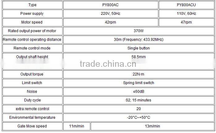 Sliding Gate Operators Maximum Gate Weight 800kg PY800AC/PY800ACU