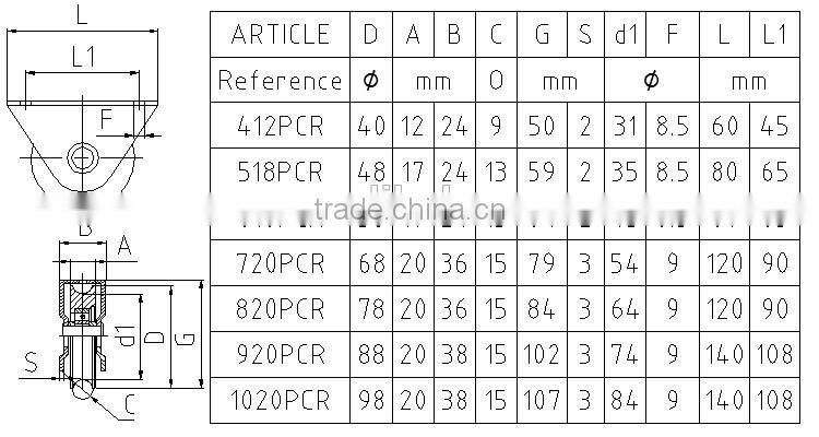 Wheel article of photos is 518PCR producing by CNC lathe,with outer support,one pcs 6201RS bearing.Wheel materal C45 steel.Color yellow or white zinc.