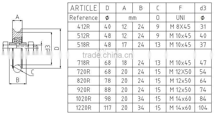 1.6 Inch Slidng u Groove Pulley Diameter 68mm Thickness 20mm Bearing 6203RS Groove "U" With M12x50 Bolt 820R