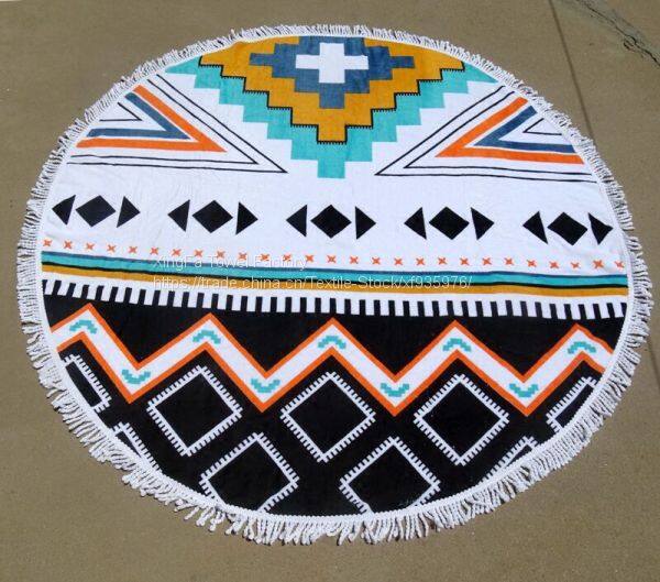 2017 Best Sale 100% Terry Cotton Printed Round Beach Towel With 150cm