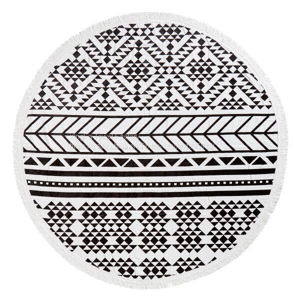 Home > Products > round beach towel > White&Black Printing Circle Beach Towel/Round Beach Towel