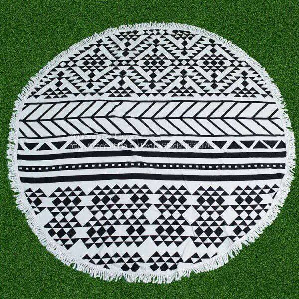 White&Black Printing Circle Beach Towel/Round Beach Towel