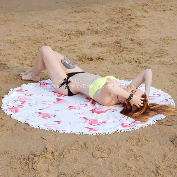 2017 Best Sale 100% Terry Cotton Printed Sexy Round Beach Towel With 150cm By 150cm