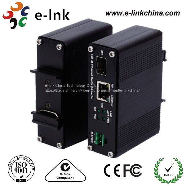 LNK-IMC3011P-SFP is a DIN rail type media converter that supports external SFP Modules and meets EN55022 standard. The Ethernet port support high power PoE (Power Sourcing Equipment) which complies with IEEE802.3at standard. It is a hardened grade product whose operating temperature range is -40°C to +80°C. LNK-IMC3011P-SFP supports 10/100/1000M Ethernet Port and 1000M SFP Port. The Ethernet port supports both half-duplex and full-duplex mode. Users can use different type of SFP modules (single-mode/multi-mode fiber, 1/2 core) as needed.