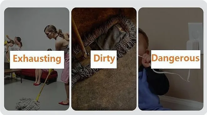 Mops got dirty and wet easily, hard to dry, and with poor cleaning performance. Wet mops generates stinky smells and are prone to bacteria raising