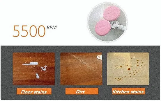 Two rotating pads (with rotating speed 5500RPM) give strong power to clean the stains on floor. Hold the handle, direct its movement, a 100 sqm floor is cleaned in 5 minutes.