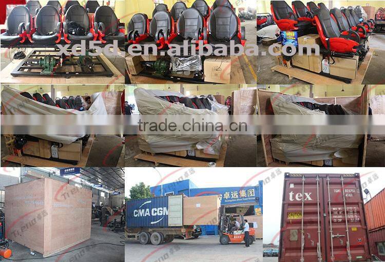 We devote ourself to designs and manufactures the full set 5D cinema equipment with the outside cabin. Based on more than 14 years of Industry technology experience, a number of specialized technical skills and a contingent of skilled staff team, we devotes ourselves to the research and development, manufacturing and sales of 4D Cinema Seats, 5D cinema equipment, mini 7D cinema,5d alibaba,Dynamic Simulant Platforms, Attractive and exciting dynamic 5d cinema,5d movies 5d alibaba, and FULL SET of 5D /6D/7D/9D/10D/11D /XD cinema equipment.
