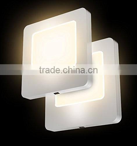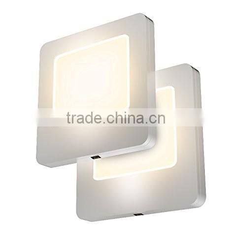 INCLUDES two plug-in LED night lights with a warm white glow and dusk to dawn setting in darkness