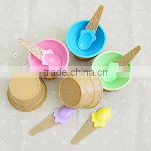 High Quality 2-Sets,Kids Ice Cream Bowl Spoon Set Cute Children Feeding Tableware Plastic Bowl