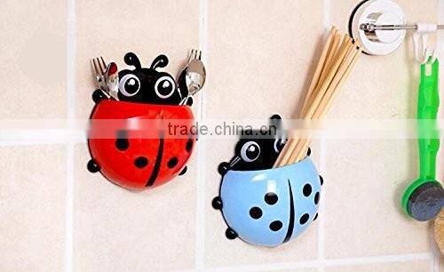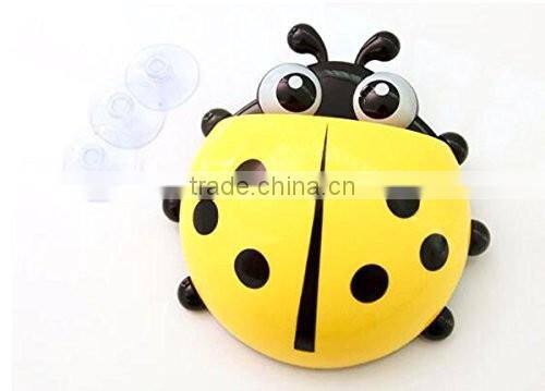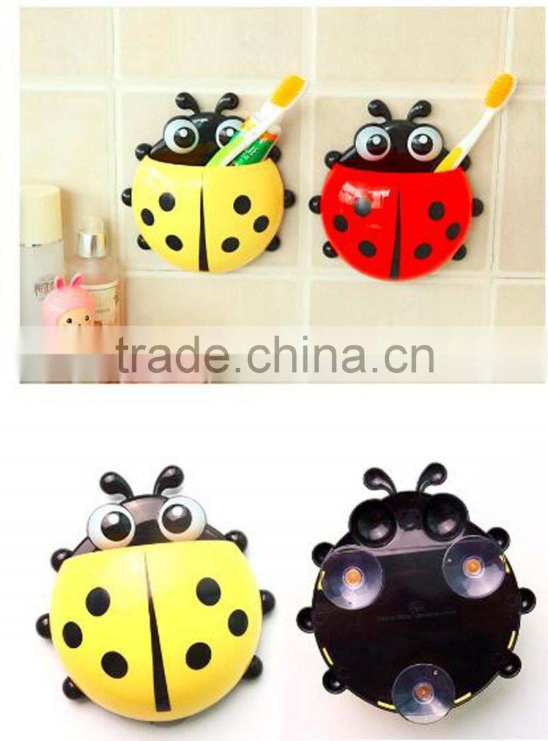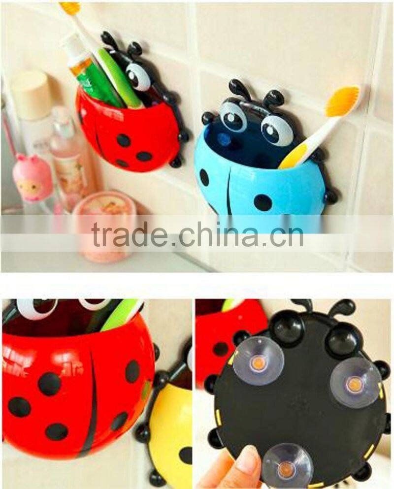 Cute Cartoon Ladybug Kids Wall Suction Cup Mount Toothbrush Box Travel Organizer Plastic Box Storage Organizer