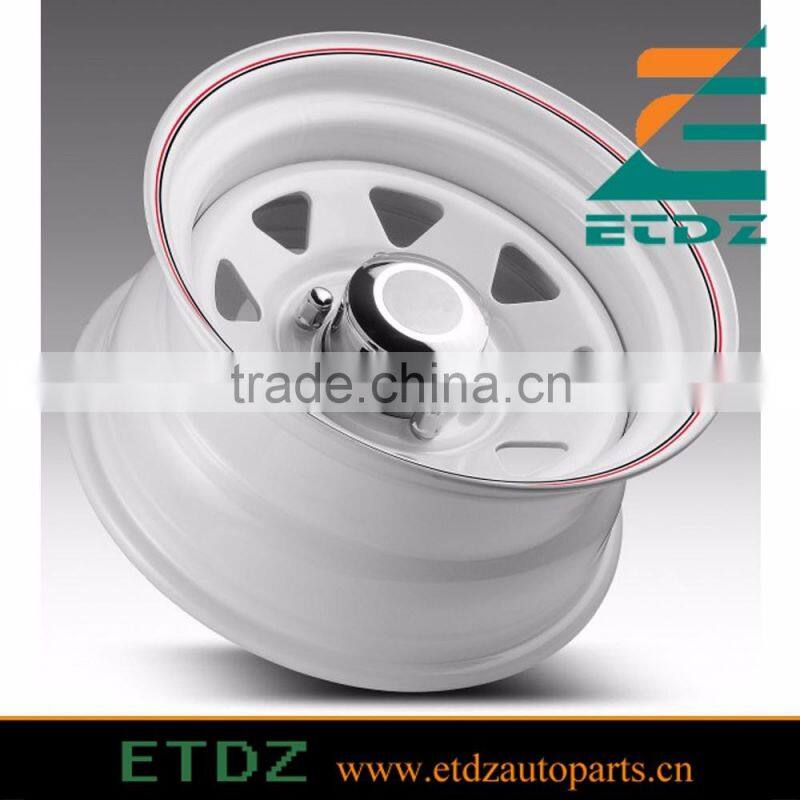 15X6 Eight Spoke Terra White With Pin Stripe Steel Wheels for 4x4, SUV & Trailers