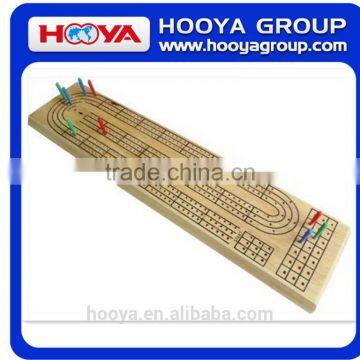 Wood 3 track cribbage board, solid wood, 36.4*9.7*1.8cm, shrink packing or customized