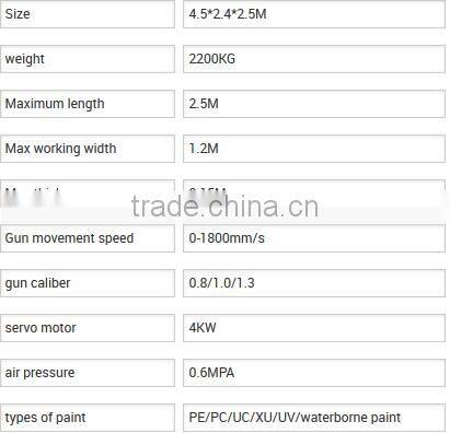 The digital operation of touch computer is adopted, simple and easy to learn. It realizes technical features of simulating manual spraying through computer's accuracy control on spray gun movement route, and ensures that paint surface is uniform and oil paint at workpiece corner is sprayed in place.