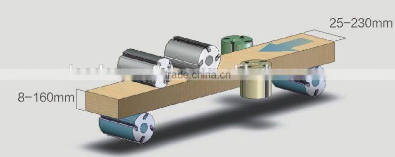 8.Pneumatic pressing feeding roller section by section adjusts for pressing force, it favors for smooth feed-in of different thicknesses of timber.