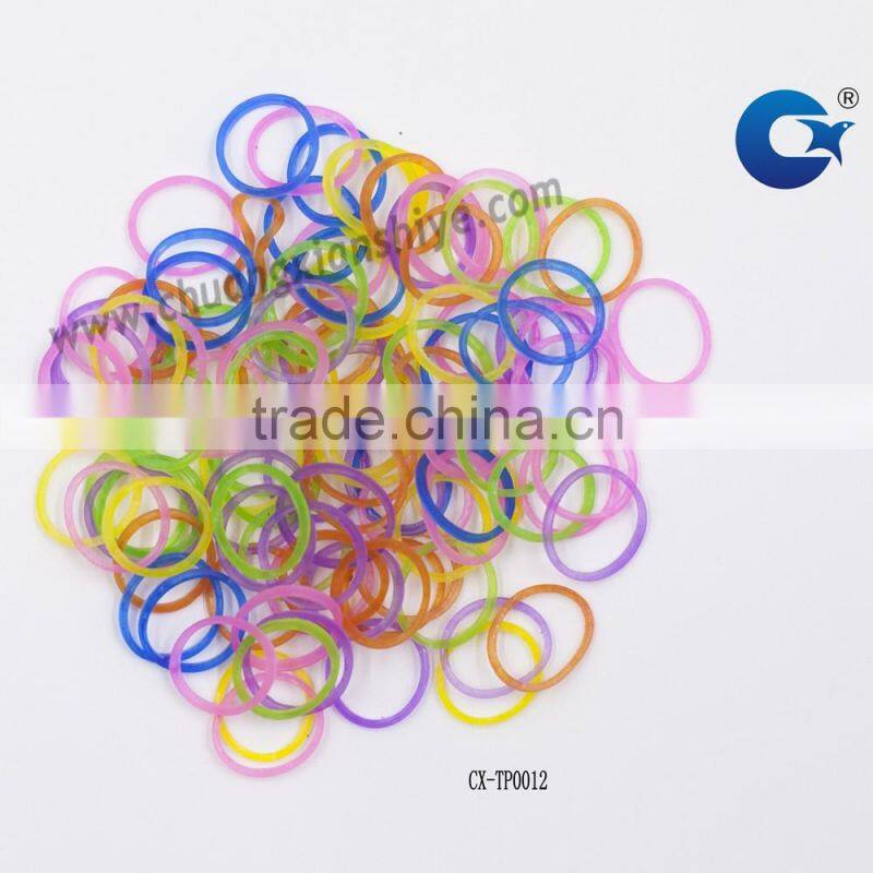 We ordinarily make the rubber bands in these color, transparent white with blue, with pink, with yellow, with grass green, with black, with red, and we also can make any color in pantone color card.