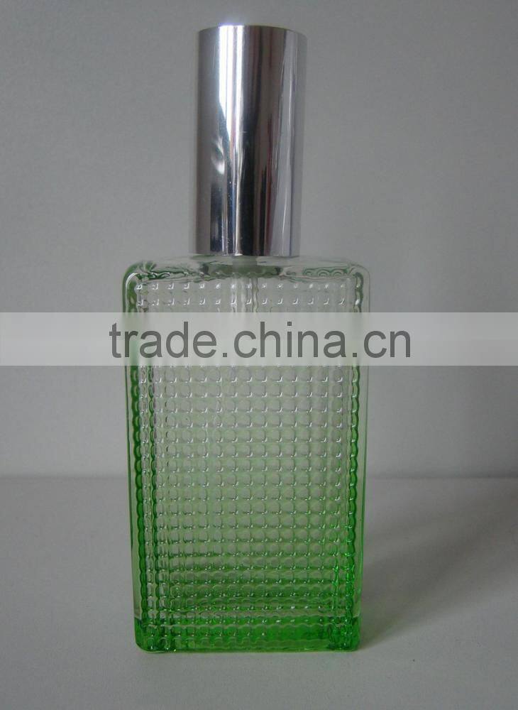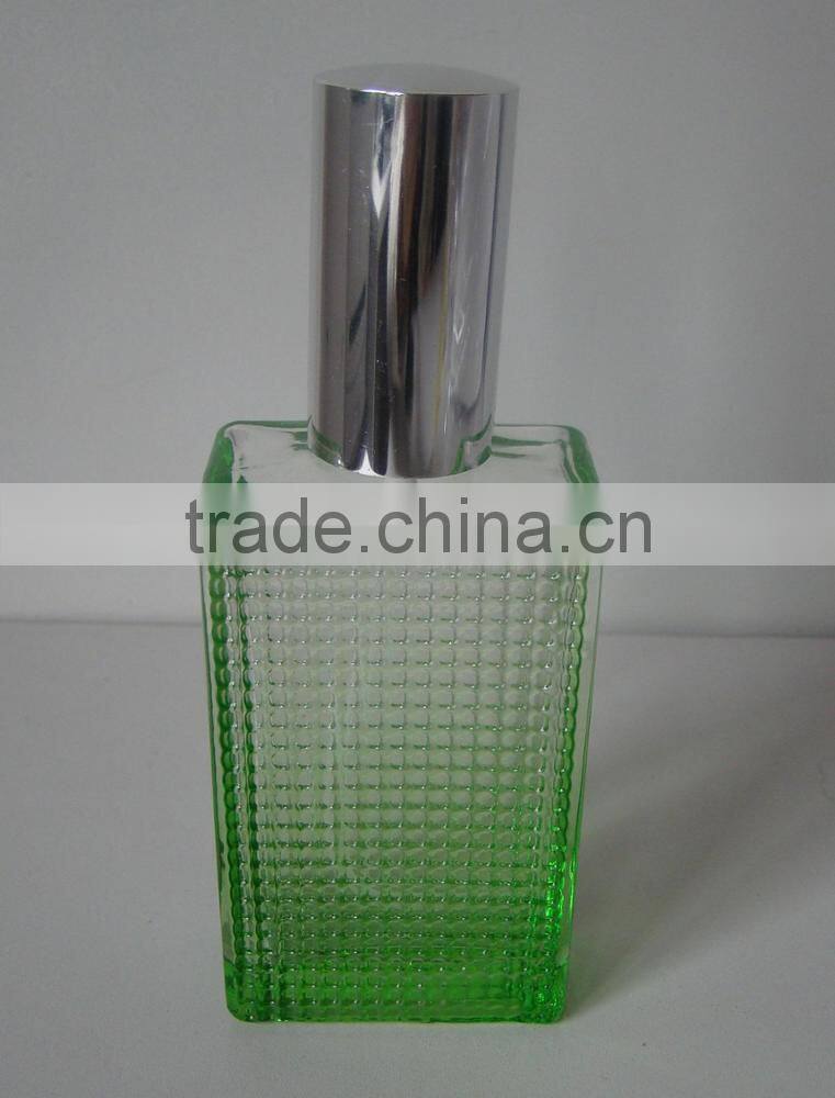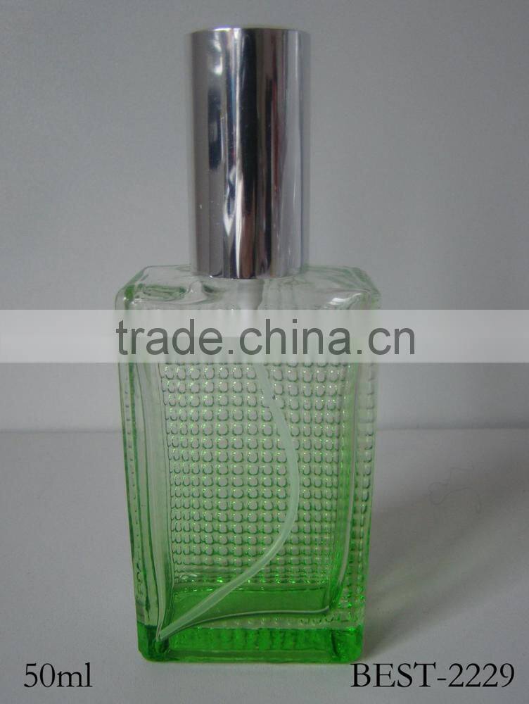 50ml green perfume glass bottle aluminum sprayer empty rectangular glass bottles