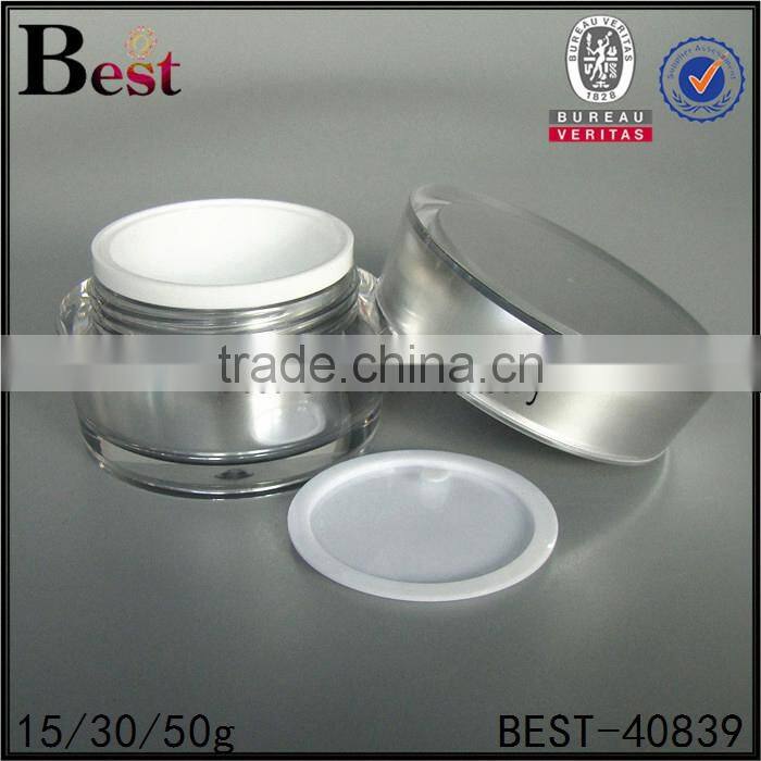 unique acrylic cream jar for cosmetics packing white color 30g 50g cheap plastic jars