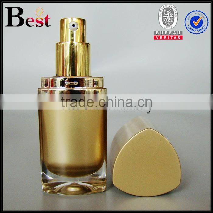 cosmetic triangle shape gold 15ml acrylic lotion bottle