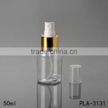 50ml hot products gold aluminum spray clear pet spray bottle perfume cosmetic water plastic spray bottle cost price wholesale