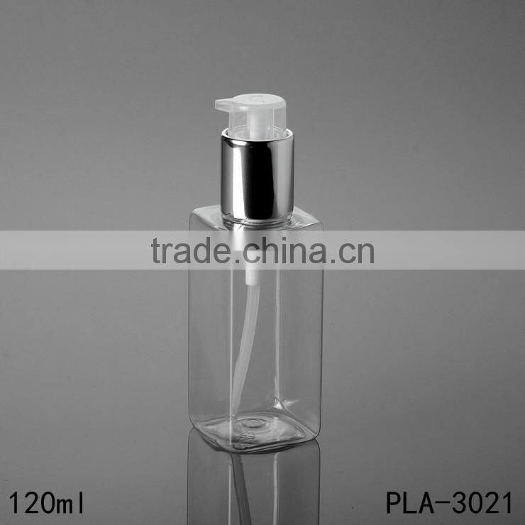 120ml clear cosmetic skin care lotion serum square pet bottle silver aluminum pump pet plastic bottle alibaba best sellers