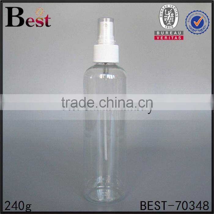 240ml alibaba china cosmetic water toner pet spray bottle clear round shoulder plastic bottle pet factory price wholesale