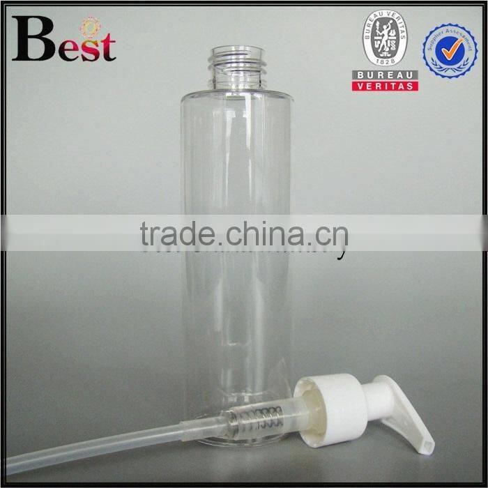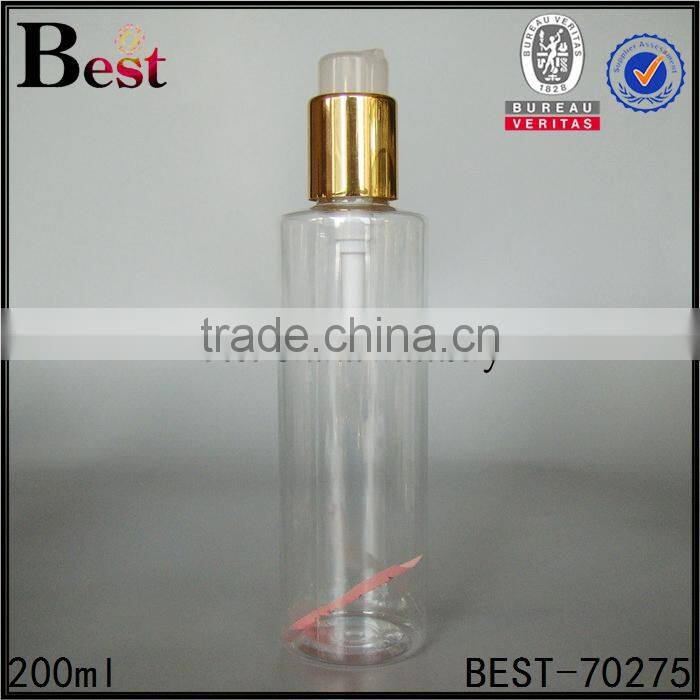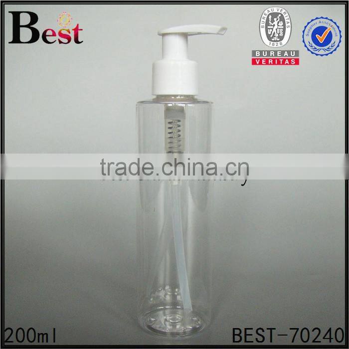 alibaba china clear 200ml pet plastic bottle cosmetic packaging flat shoulder pump plastic bottle pet for skin care wholesale