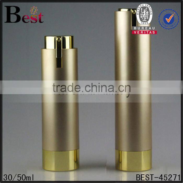 30ml 50ml alibaba china high quality fancy gold UV plastic cosmetic airless bottle rotary pump for personal care lotion serum