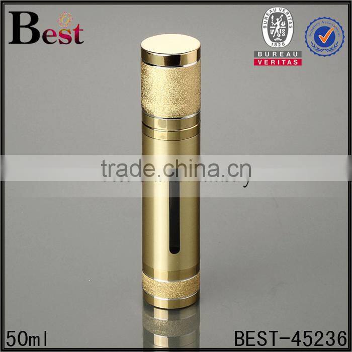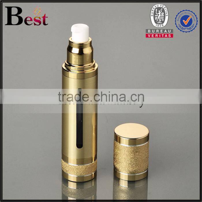 50ml luxury cosmetic packaging skin care gold UV acrylic airless pump cosmetic serum bottle with window bulk buy from china