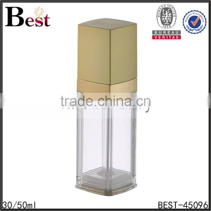 30ml 50ml alibaba china cheapest square clear bottle pump dispenser food grade cosmetic lotion serum airless gold UV pump bottle