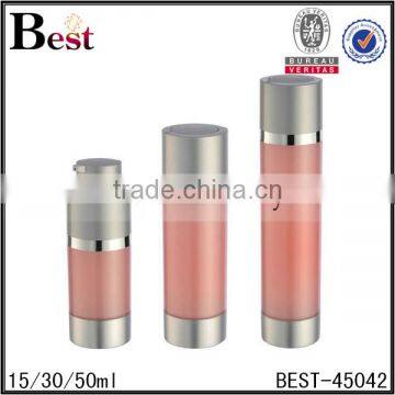 15ml 30ml 50ml cosmetic lotion beautiful pink airless rotary airless bottle with silver UV special rotary pump china suppliers