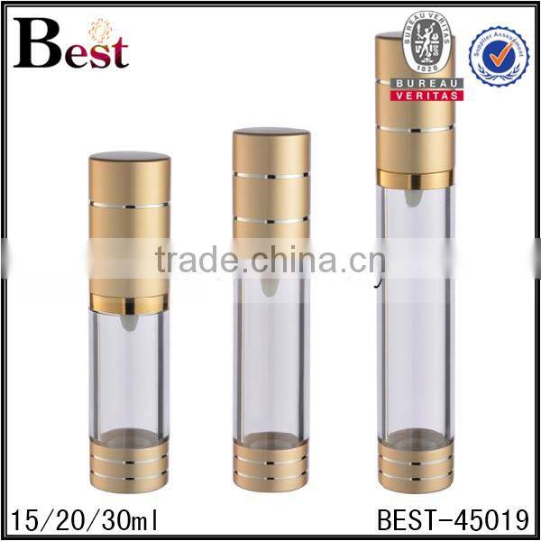 15ml 20ml 30ml cosmetic packaging skin care serum cream lotion clear airless pump bottle with gold UV pump bulk buy from china