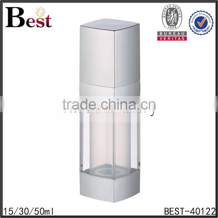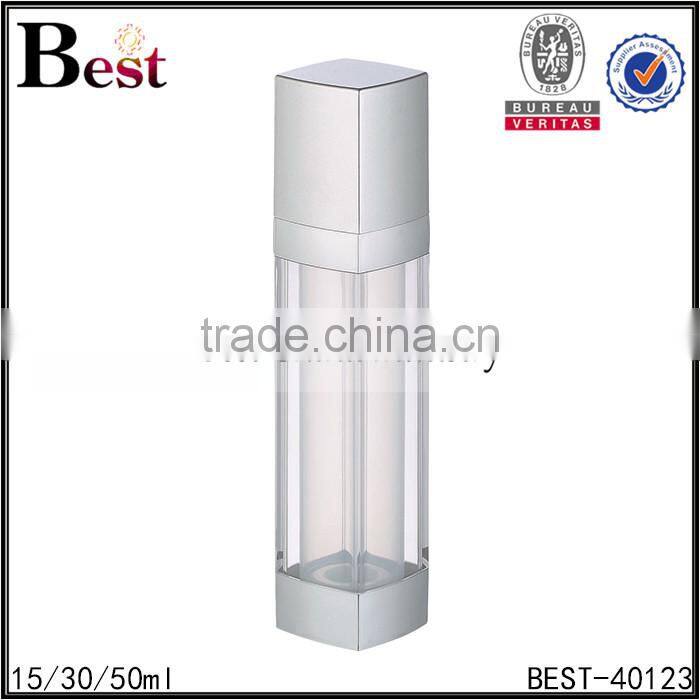 cosmetic packaging alibaba best seller 15ml 30ml 50ml fancy square clear double tube airless lotion pump bottle with silver pump