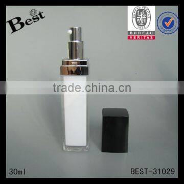 alibaba china white double wall square silver UV pump plastic airless bottle 30ml with black cap for cosmetic lotion serum cream