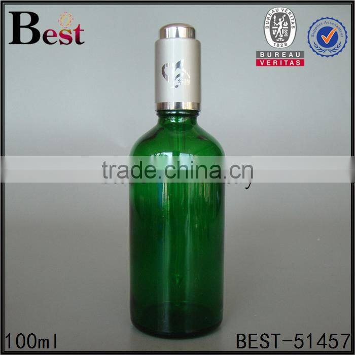 Good Quality Green Blue White Empty Essential Oil 100 ml Glass Bottle Aluminun Press Pump Screen Printing Hot Stamping Cosmetics
