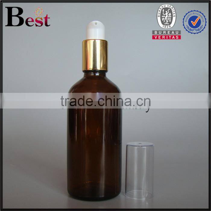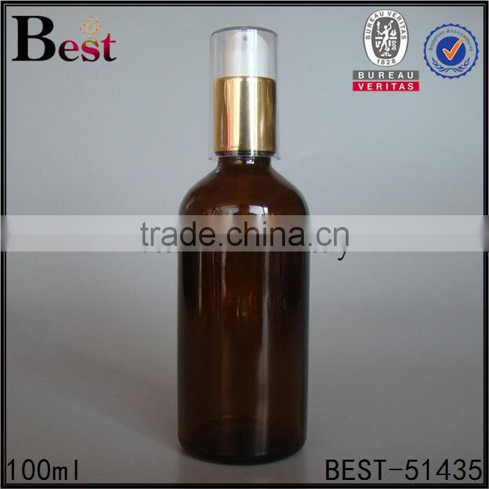 100ml hot selling amber empty glass olive oil bottle pump screen printing personal care wholesale