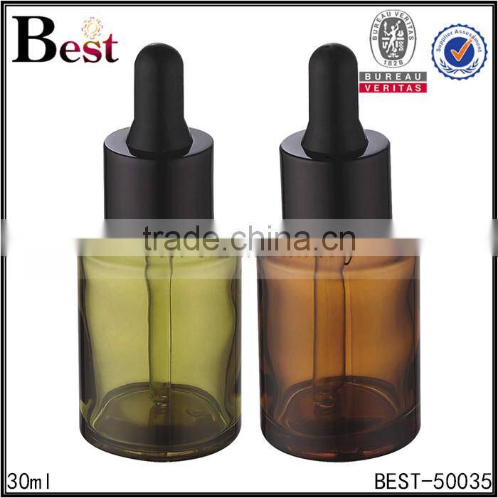 wholesale good quality empty amber green 30ml glass dropper bottle oblique shoulder 30ml glass bottle with dropper essential oil