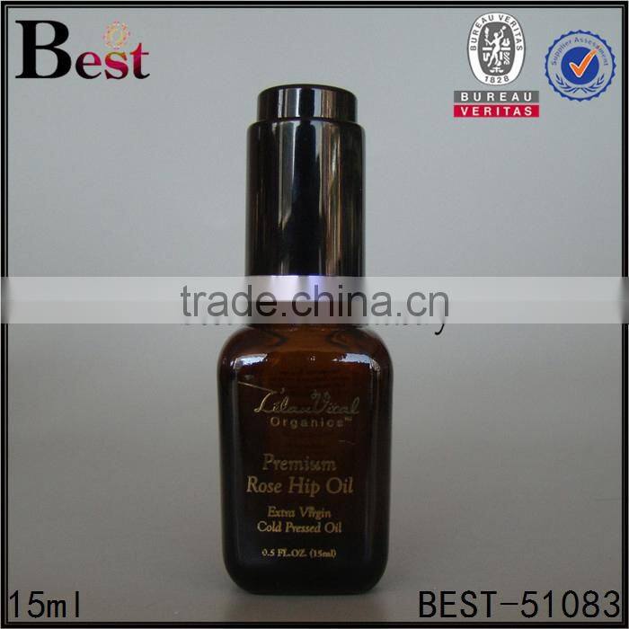 15 ml amber glass bottle lotion pump essential oil fragrance perfume 15 ml amber glass bottle screen printing cosmetic packaging