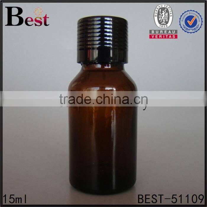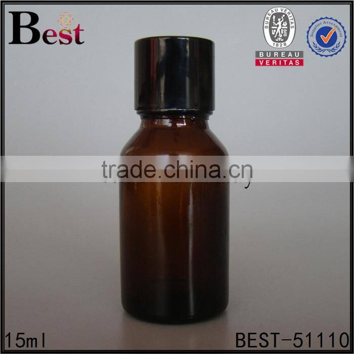 15ml amber round shape glass bottle for essential oils glass vial small glass bottles with cap hot sale