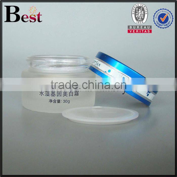 hot products 20ml 30ml screen care printing frosted glass jar skin care cream glass jar with blue metal lid cosmetic packaging