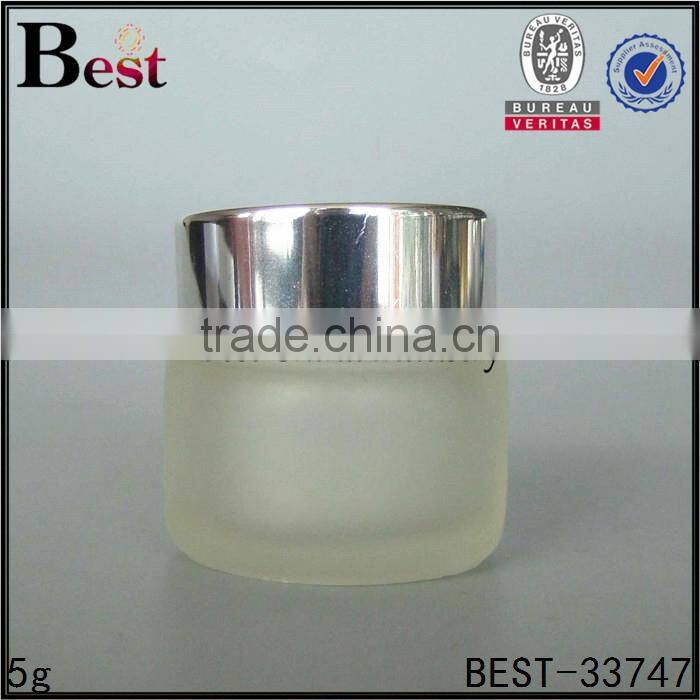 alibaba china cosmetics cream frosted glass jar 5ml mini glass jar vial with shiny silver lid