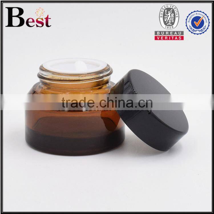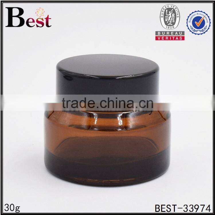 30g hot products amber glass cosmetic jar oblique shoulder cosmetic glass jar with black cap china suppliers