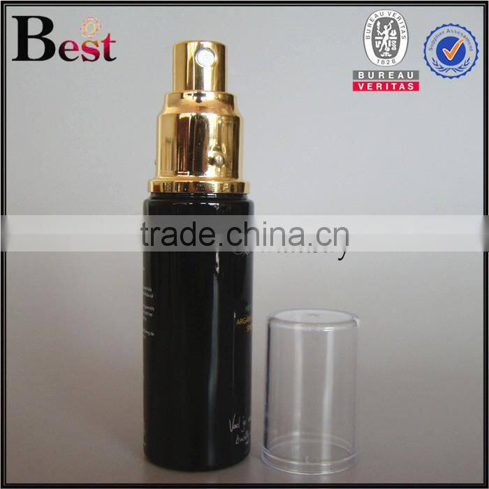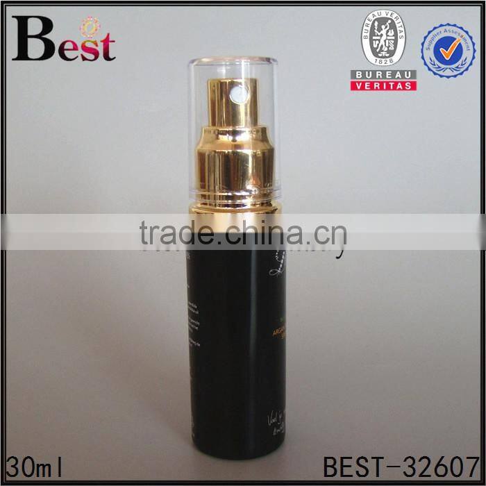 30ml cost price alibaba china black glass bottle gold metal spray cosmetic toner silk screen printing bottle glass manufacture