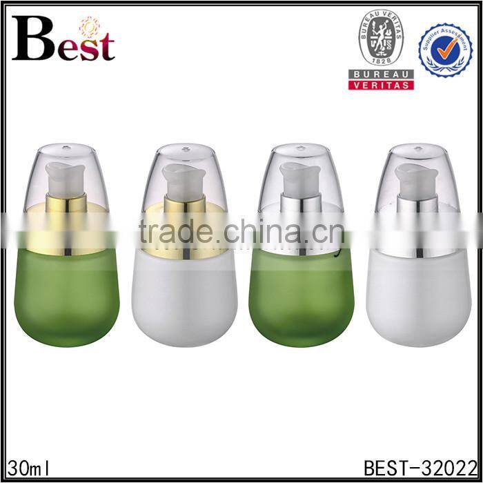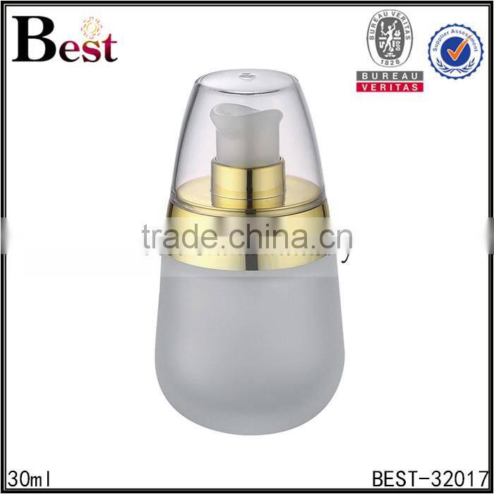 30ml alibaba china frosted cosmetic lotion glass bottle with silver aluminum pump cosmetic packaging wholesale